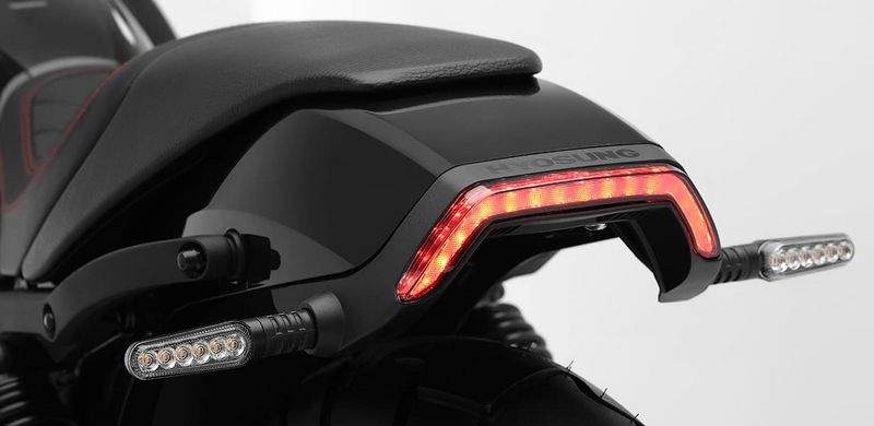 Pełne oświetlenie LED – reflektor, kierunkowskazy i światła tylne – gwarantuje świetną widoczność po zmroku, podnosząc bezpieczeństwo i dodając maszynie nowoczesnego, dynamicznego wyglądu.