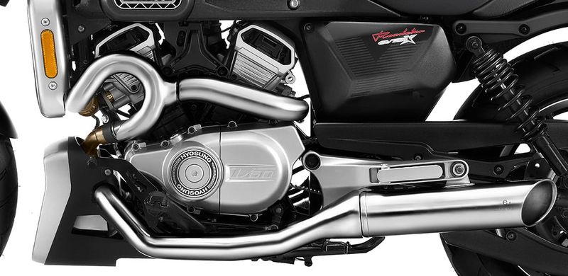 Mocny, efektowny i wyposażony w najnowocześniejszą technologię – GV 125X zachwyca dynamiką i charakterem. Jego wyrazisty, muskularny design z szerokim zbiornikiem paliwa, charakterystycznymi filtrami powietrza i solidnym, 60-stopniowym silnikiem V-twin sprawia, że przyciąga wzrok.